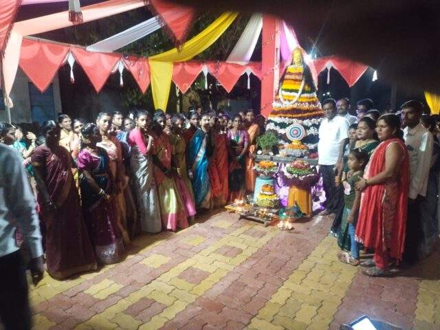 अहेरी : तालुक्यातील राजपूर पॅंच येथील बत्तकमा मंडळला काँग्रेस अहेरी विधानसभा क्षेत्रचे महासचिव व माजी जि.प.अध्यक्ष तथा अहेरी बाजार समिती संचालक अजय कंकडालवार मा.श्री.अजयभाऊ कंकडालवार यांनी उपस्थित राहुन विधिवात पूजा आरती देऊन बतकम्मा व शारदा देवीची दर्शन घेतले.