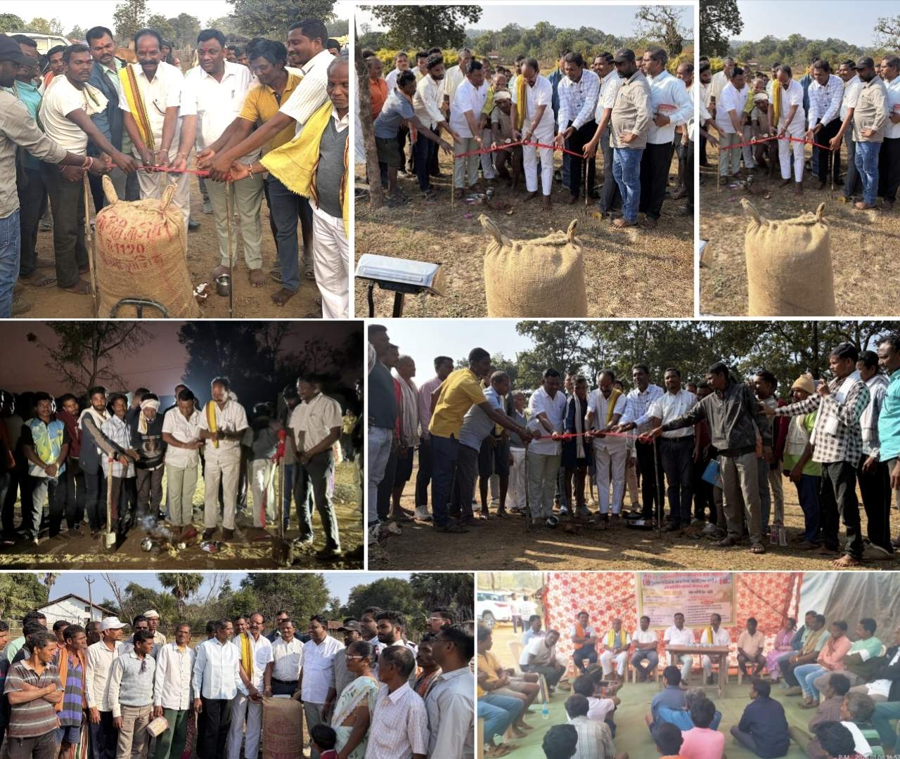 भामरागड : तालुक्यातील कोठी,घोटपाडी,आरेवाडा,तडगाव,येथील उप प्रादेशिक अहेरी ( उच्च श्रेणी ) आदिवासी विविध कार्यकारी सहकारी संस्था मार्फत खरीप पणन हंगाम धान खरेदी केंद्राचे उदघाटन महाराष्ट्र प्रदेश काँग्रेस कमिटीचे महासचिव व माजी जि.प.अध्यक्ष तथा अहेरी कृषि उत्पन्न बाजार समिती संचालक मा.श्री.अजयभाऊ कंकडालवार यांच्या हस्ते फित कापून धान खरेदी सुरूवात करण्यात आले आहे.या धान खरेदी कार्यक्रमला महाराष्ट्र राज्य आदिवासी विकास महामंडळ नाशिक संचालक संचालक मा.श्री.सैनजी गोटा यांनी प्रमुख उपस्थित होते.
