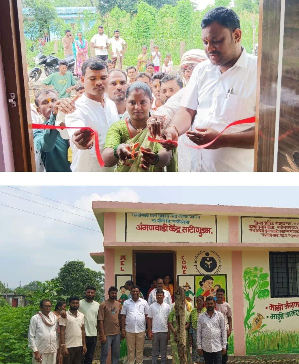 अहेरी : तालुक्यातील ग्रामपंचायत रेपनपल्ली अंतर्गत येत असलेल्या ताटीगुडम येथील अंगणवाडी इमारतीचे लोकार्पण महाराष्ट्र प्रदेश काँग्रेस कमिटीचे महासचिव व माजी जि.प.अध्यक्ष तथा संचालक,कृषि उत्पन्न बाजार समिती अहेरी मा.श्री.अजयभाऊ कंकडालवार यांच्या हस्ते करण्यात आले.