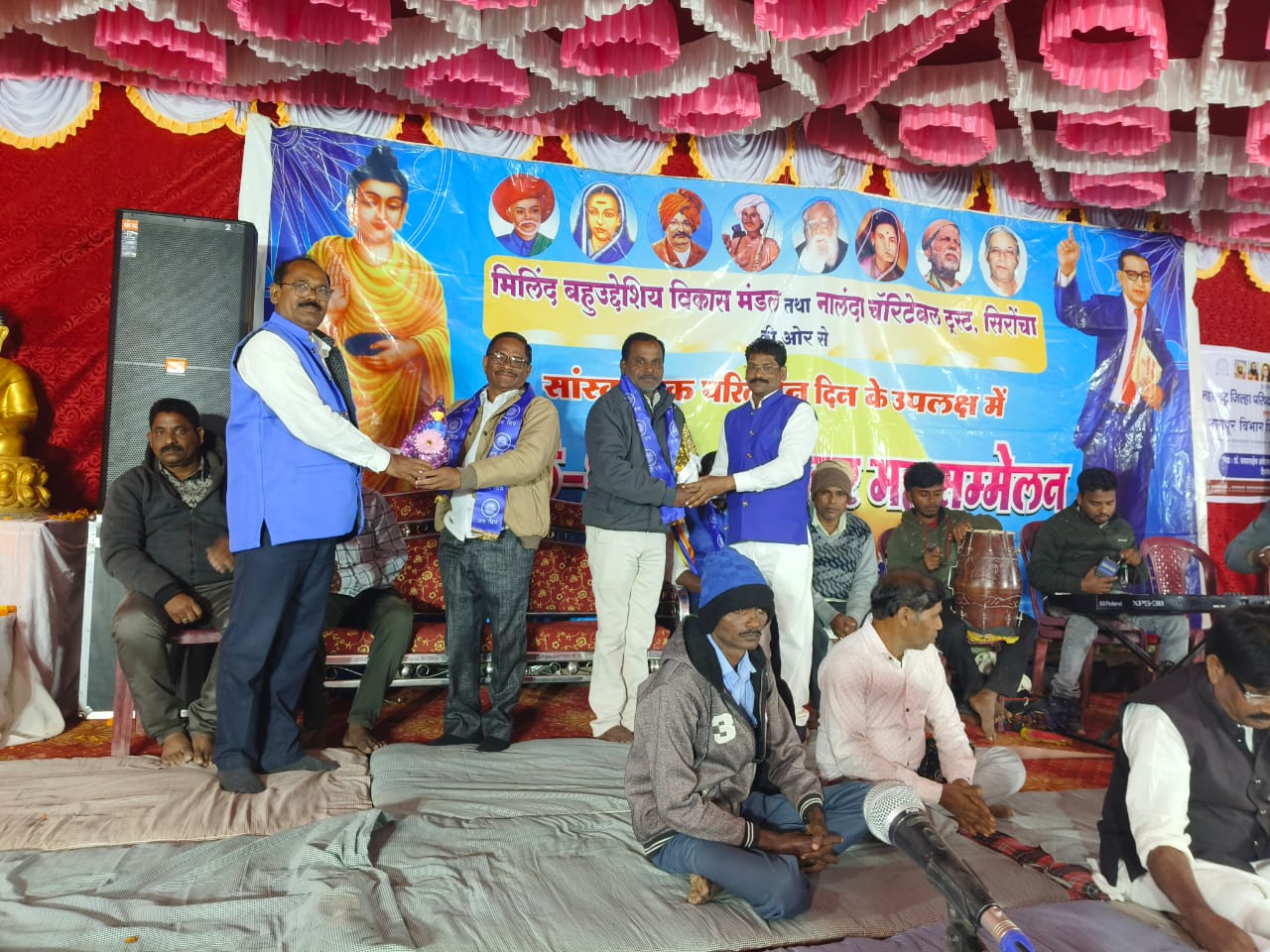 सिरोंचा : सिरोंचा माल येथील शाहू नगर प्रांगणात दरवर्षीप्रमाणे यावर्षी सुद्धा मिलिंद बहुउद्देशीय संस्था व नालंदा चॅरीटेबल ट्रस्ट सिरोंचा कडून दिनांक 24 व 25 डिसेंबरला दोन दिवसीय फुले,शाहू व आंबेडकर महासम्मेलन व समाज प्रबोधन कार्यक्रमाचे आयोजन करण्यात आले होते.